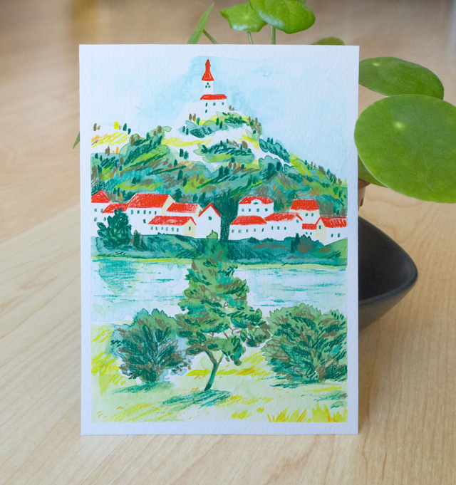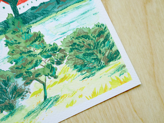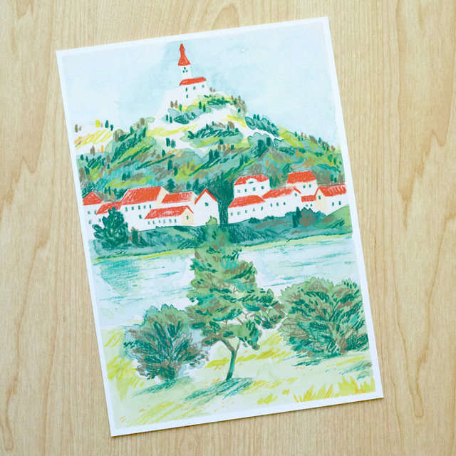 Reproduction d'une illustration réalisée à la gouache et aux crayons de couleur. Chaque reproduction est signée.