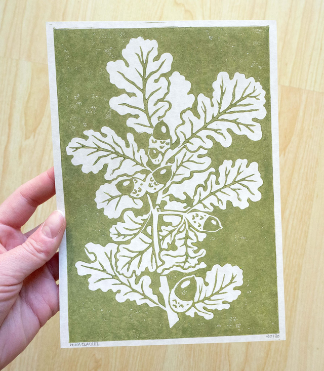 Linogravure "Chêne", tirage limité de 30 exemplaires.